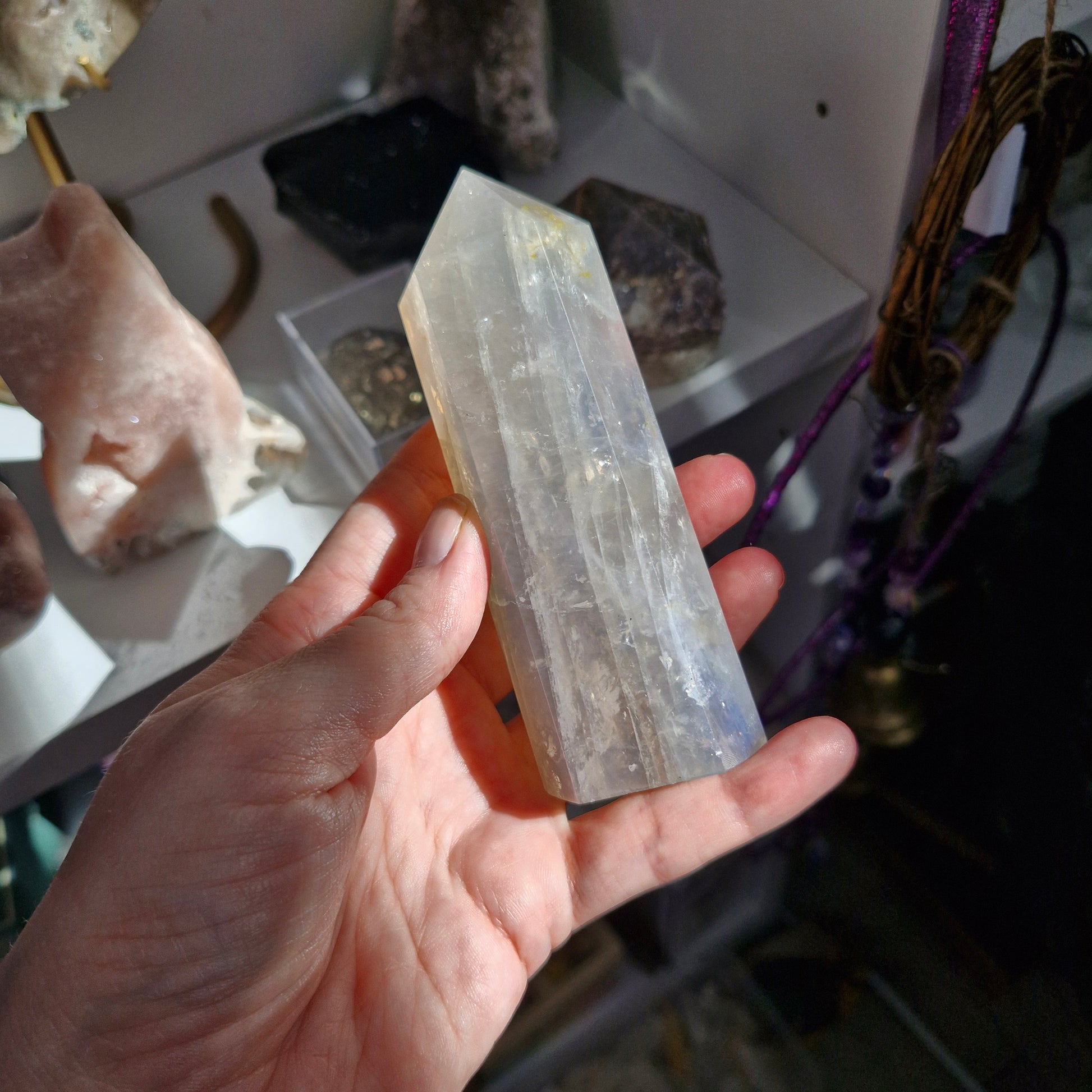 Blue rose quartz tower