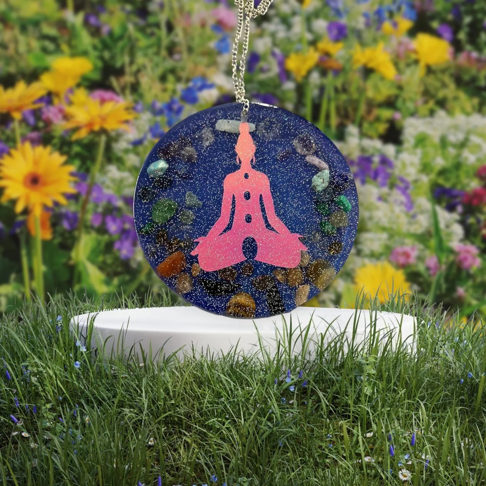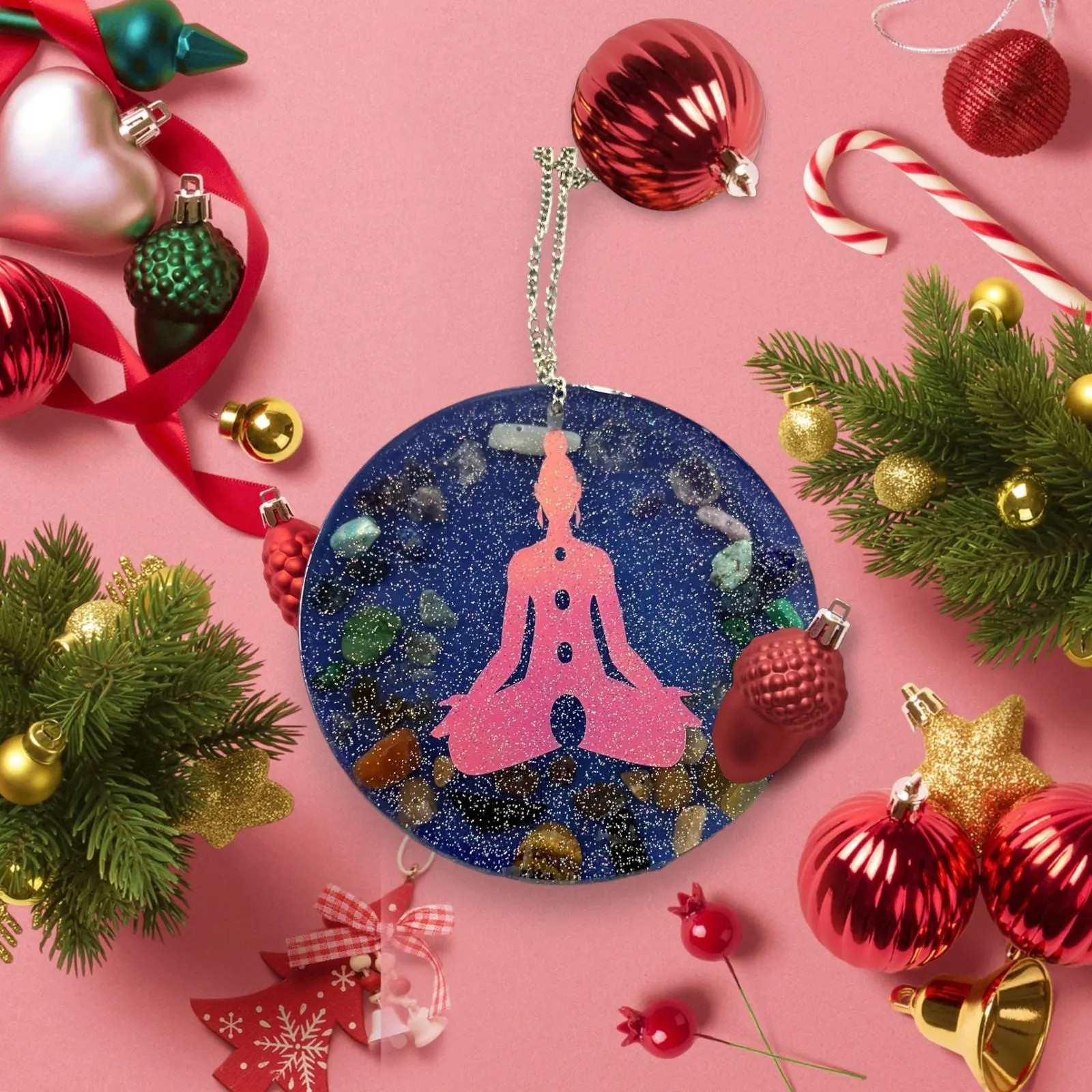A beautiful Chakra Suncatcher /mobile. These are handmade and contain semi precious stone with connection to the chakras. They also glisten when turned. They hang from a chain and would be a wonderful gift for anyone.
