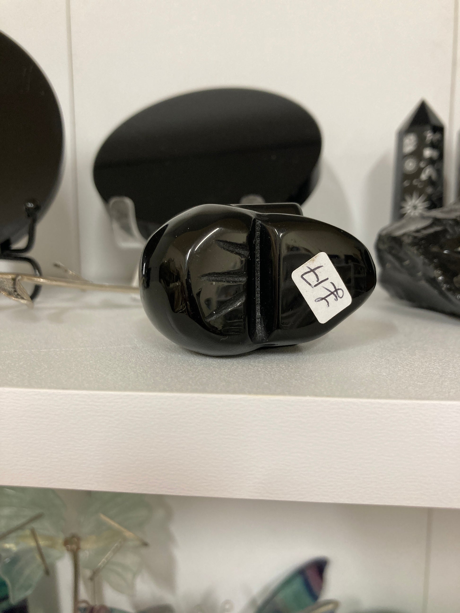 Obsidian skull carving