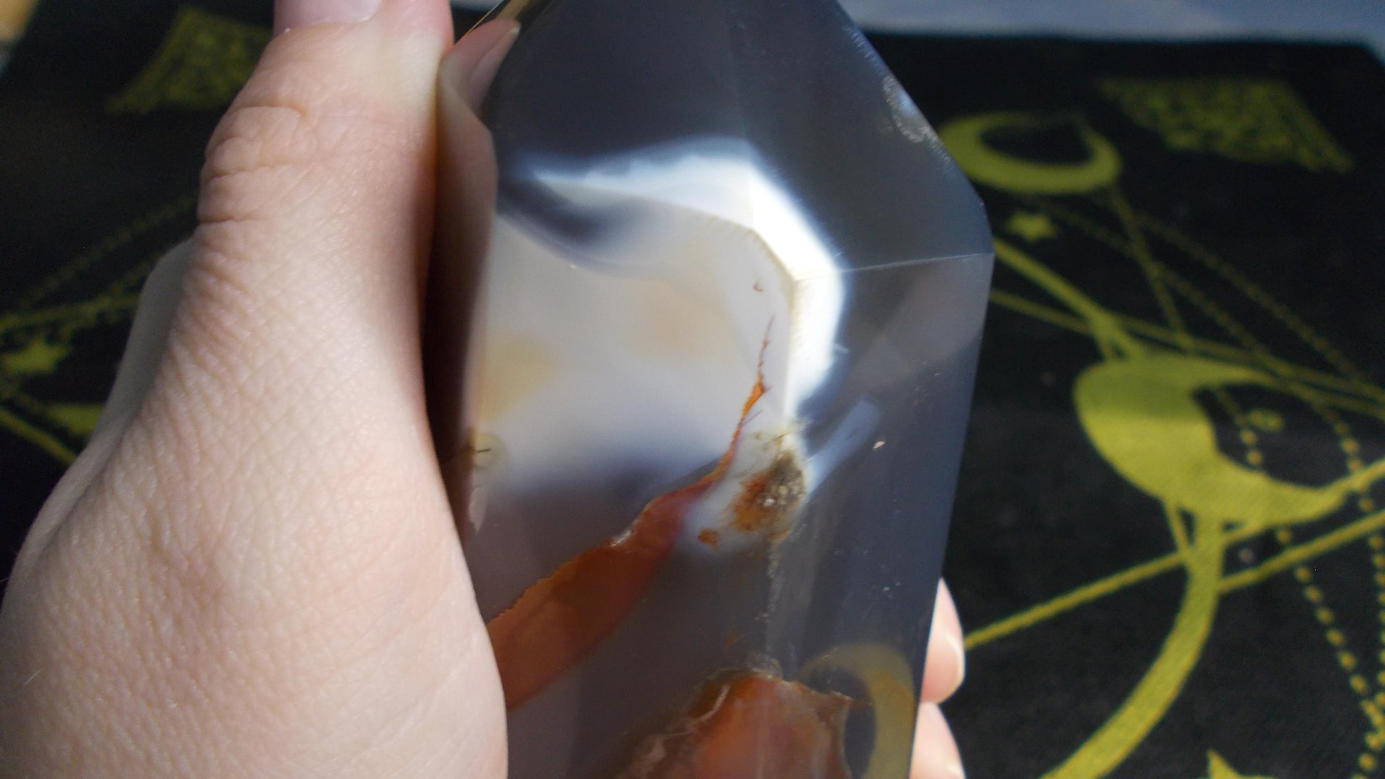 This Agate is part of the chalcedony family and is found in Madagascar (hand polished). It is sometimes known as blue chalcedony Agate. It is said to help eliminate self doubt and help stabilise emotions.