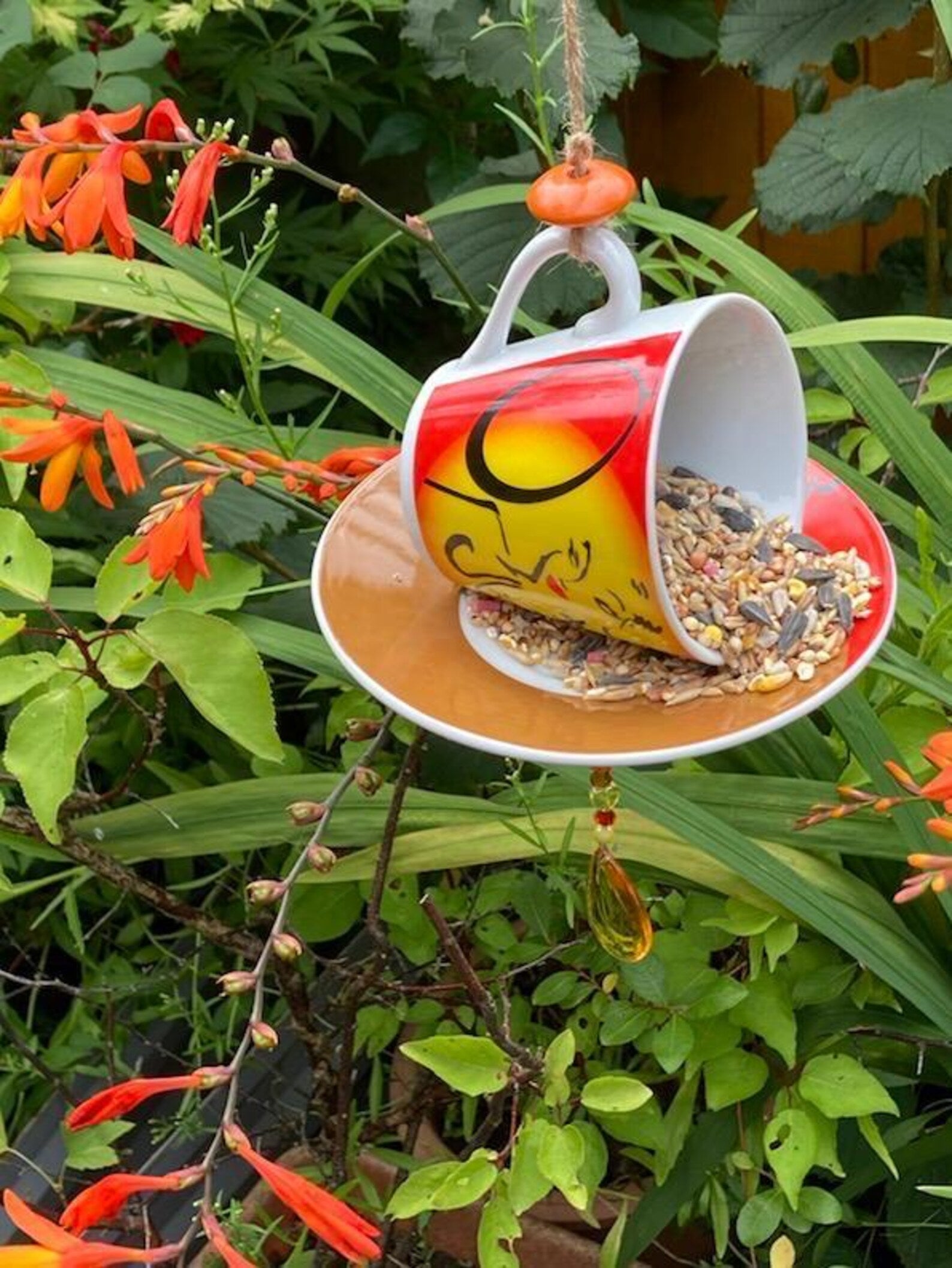 Beautiful bird feeders made using different cups and saucers. I can make these in any colour just message me. This are real statement pieces and your bird feeder will be the envy of everyone. FREE POSTAGE